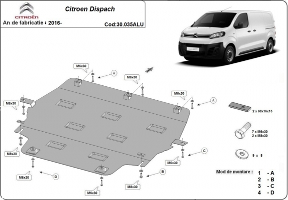 Aluminium sump guard for Citroen Dispach (2016-2026)