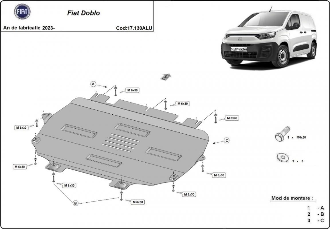 Aluminium sump guard for Fiat Doblo (2023-2026)