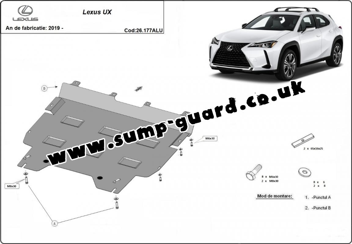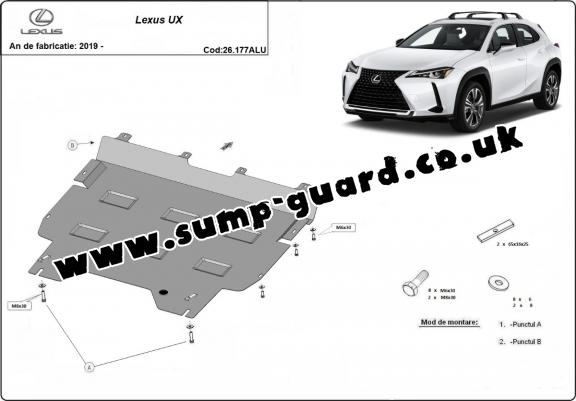 The sump guard is new and fits perfectly for all versions of Lexus UX manufactured between 2019 and 2025. Sump guard for the protection of the: engine, gearbox, radiator Made out of 3 mm thick Aluminium plate. The shields are made of aluminum, but the mounting brackets are made of steel. Screws, nuts, clips, all fastening accessories are included. All sump guards are powder coated to prevent corrosion. The exterior of the sump guard is provided with Aluminium reinforcements, which increases the resistance to impact. |