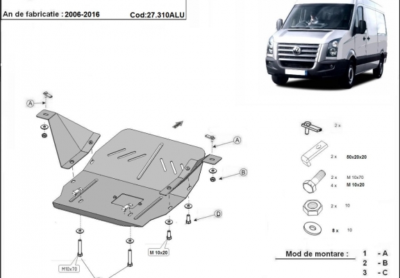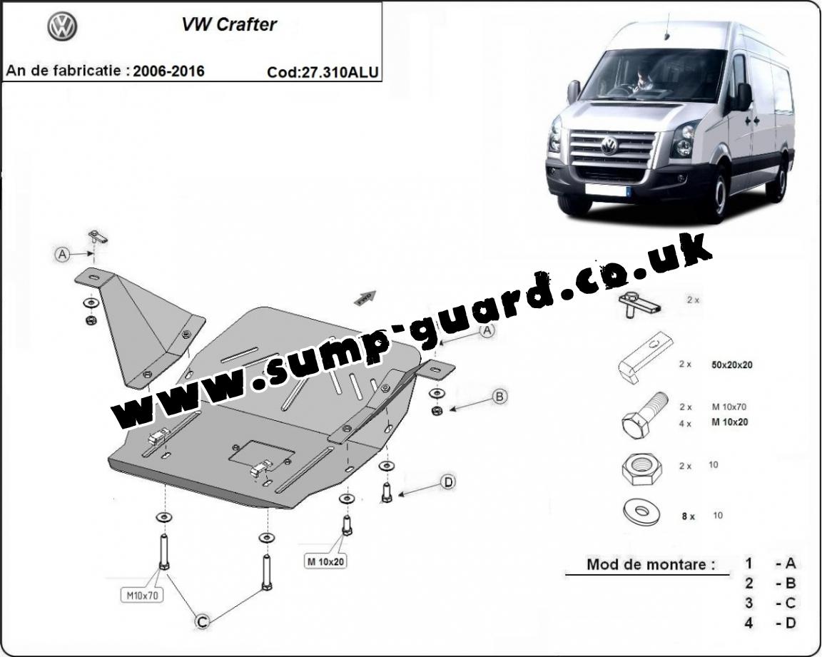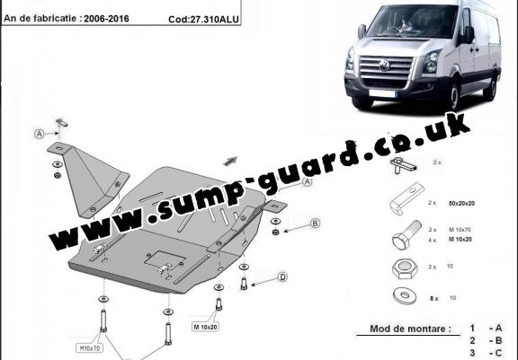 Aluminum sump guard for the protection of the engine and the gearbox for Volkswagen Crafter (2006-2016)