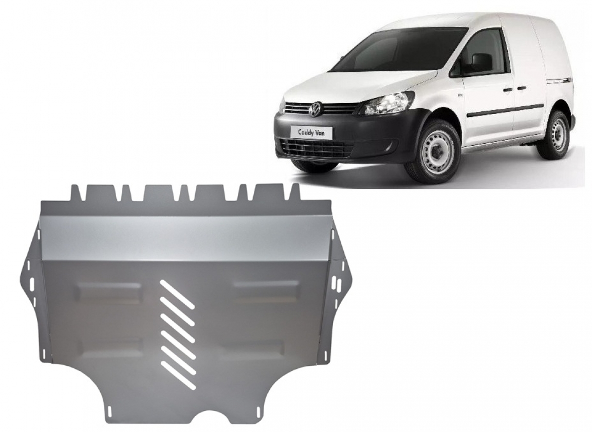 The sump guard is new and fits perfectly for all versions of VW Caddy manufactured between 2011 and 2020. Sump guard for the protection of the: engine, gearbox, radiator Made out of 3 mm thick Aluminium plate. The shields are made of aluminum, but the mounting brackets are made of steel. Screws, nuts, clips, all fastening accessories are included. All sump guards are powder coated to prevent corrosion. The exterior of the sump guard is provided with Aluminium reinforcements, which increases the resistance to impact. |