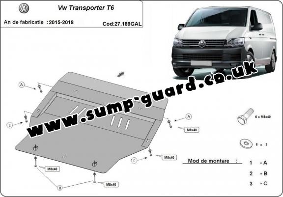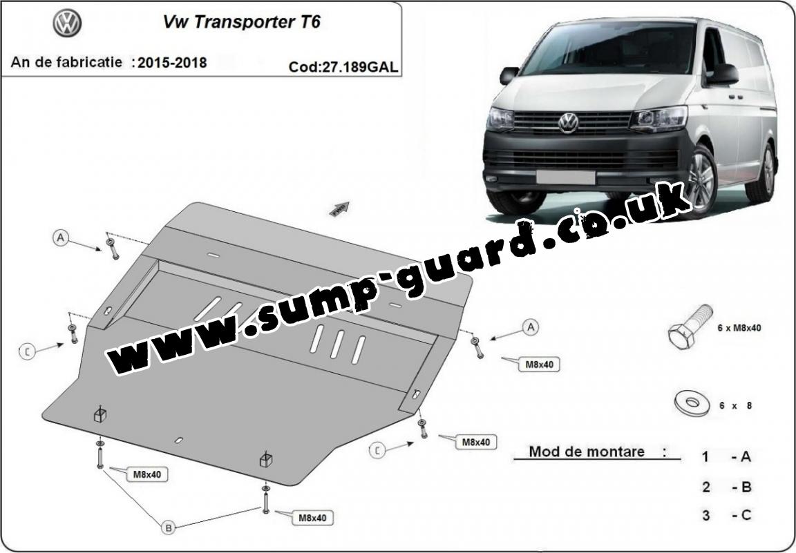 Galvanized steel sump guard for Volkswagen Transporter T6