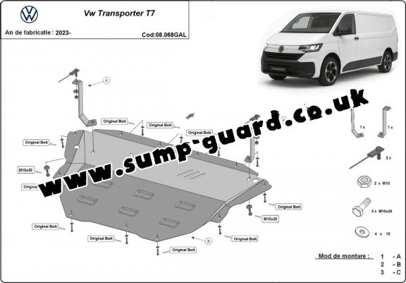 Galvanized steel sump guard for Volkswagen Transporter T7 (2023-2025)
