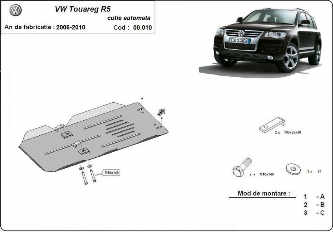 Steel automatic gearbox guard for Volkswagen Touareg 7L