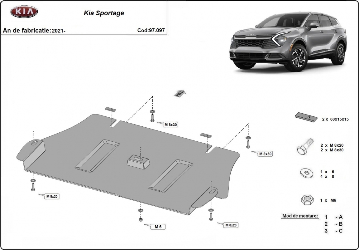 The sump guard is new and fits perfectly for all versions of Kia sportage manufactured between 2021 and 2026. Sump guard for the protection of the: Catalytic converter Made out of 2 mm thick Steel plate. Screws, nuts, clips, all fastening accessories are included. All sump guards are powder coated to prevent corrosion. The exterior of the sump guard is provided with Steel reinforcements, which increases the resistance to impact. |