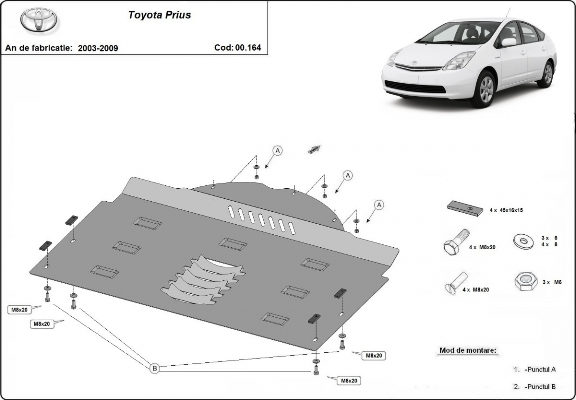 The sump guard is new and fits perfectly for all versions of Toyota Prius manufactured between 2003 and 2009. Sump guard for the protection of the: Catalytic converter Made out of 2 mm thick Steel plate. Screws, nuts, clips, all fastening accessories are included. All sump guards are powder coated to prevent corrosion. The exterior of the sump guard is provided with Steel reinforcements, which increases the resistance to impact. |