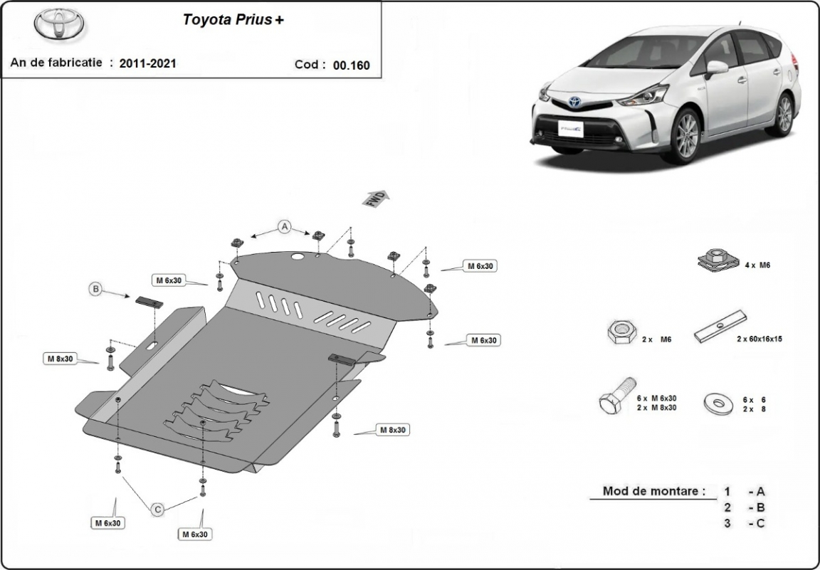 The sump guard is new and fits perfectly for all versions of Toyota Prius 3+ manufactured between 2011 and 2021. Sump guard for the protection of the: Catalytic converter Made out of 2 mm thick Steel plate. Screws, nuts, clips, all fastening accessories are included. All sump guards are powder coated to prevent corrosion. The exterior of the sump guard is provided with Steel reinforcements, which increases the resistance to impact. |