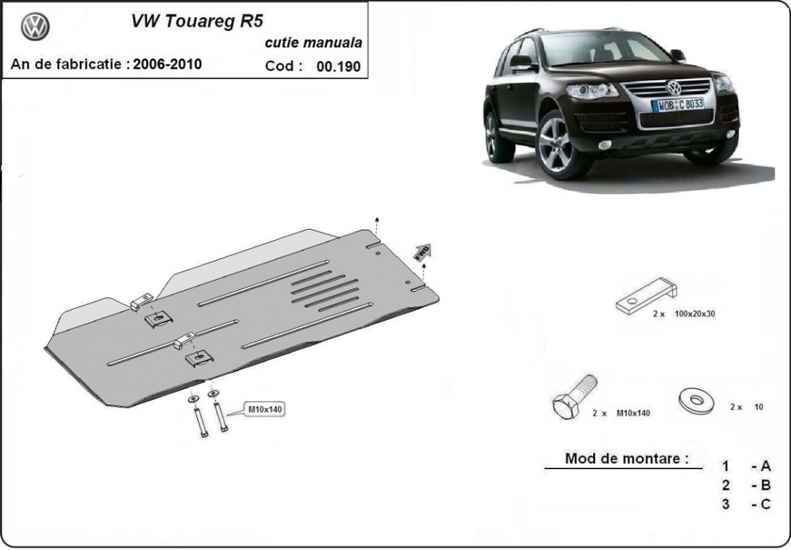 Steel manual gearbox guard for VW Touareg 7L (2006-2010)