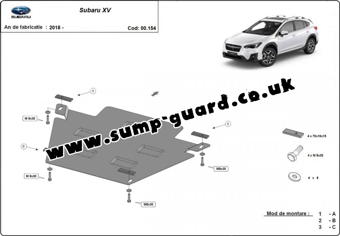 The sump guard is new and fits perfectly for all versions of Subaru XV manufactured between 2018 and 2022. Sump guard for the protection of the: gearbox Made out of 2 mm thick Steel plate. Screws, nuts, clips, all fastening accessories are included. All sump guards are powder coated to prevent corrosion. The exterior of the sump guard is provided with Steel reinforcements, which increases the resistance to impact. |