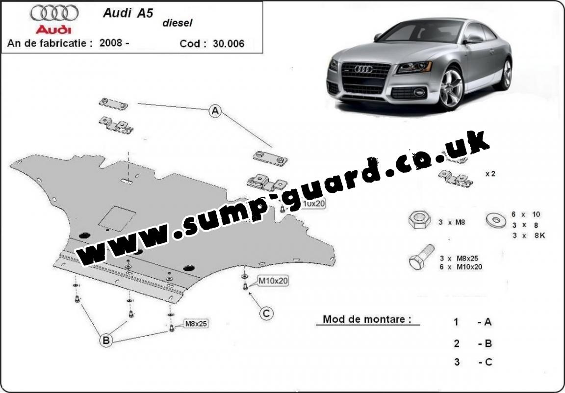 Steel sump guard for Audi A5, diesel (2008-2016)