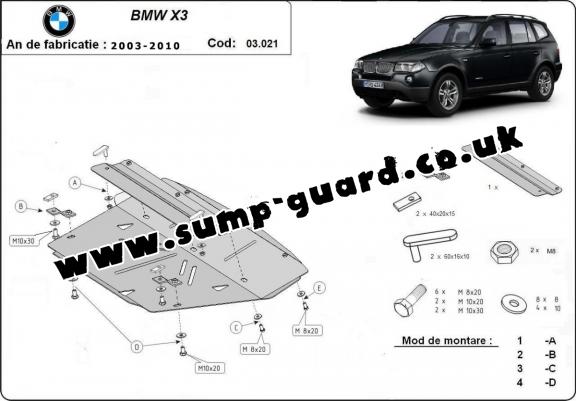 The sump guard is new and fits perfectly for the BMW X3, with the following engine/drive versions: E83 - manufactured between 2003 and 2010. Sump guard for the protection of the: radiator, front bumper Made out of 2,5 mm thick Steel plate. Screws, nuts, clips, all fastening accessories are included. All sump guards are powder coated to prevent corrosion. The exterior of the sump guard is provided with Steel reinforcements, which increases the resistance to impact. |