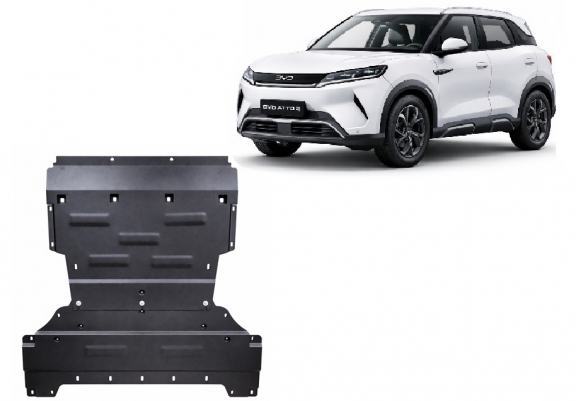 The sump guard is new and fits perfectly for all versions of BYD Atto 2 manufactured between 2025 and 2026. Sump guard for the protection of the: engine, gearbox, electric power steering gear, Front differential Made out of 2 mm thick Steel plate. Screws, nuts, clips, all fastening accessories are included. All sump guards are powder coated to prevent corrosion. The exterior of the sump guard is provided with Steel reinforcements, which increases the resistance to impact. |