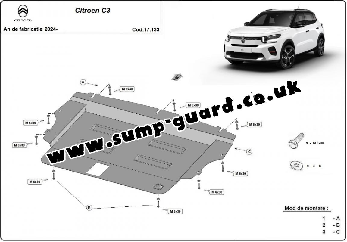 Steel sump guard for Citroen C3 (2024-2025)