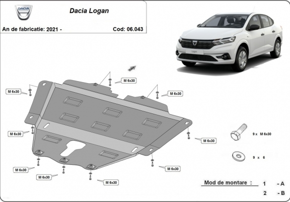 The sump guard is new and fits perfectly for all versions of Dacia Logan manufactured between 2021 and 2026. Sump guard for the protection of the: engine, gearbox Made out of 2 mm thick Steel plate. Screws, nuts, clips, all fastening accessories are included. All sump guards are powder coated to prevent corrosion. The exterior of the sump guard is provided with Steel reinforcements, which increases the resistance to impact. |