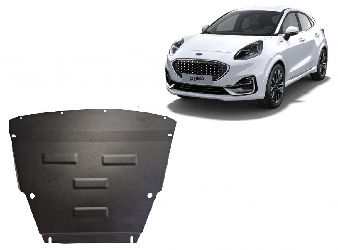 The sump guard is new and fits perfectly for all versions of Ford Puma manufactured between 2019 and 2026. Sump guard for the protection of the: engine, gearbox, radiator Made out of 2 mm thick Steel plate. Screws, nuts, clips, all fastening accessories are included. All sump guards are powder coated to prevent corrosion. The exterior of the sump guard is provided with Steel reinforcements, which increases the resistance to impact. |