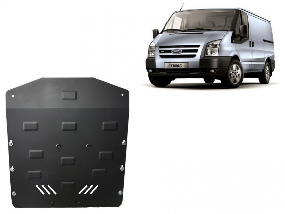 The sump guard is new and fits perfectly for all versions of Ford Transit - RWD manufactured between 2007 and 2013. Sump guard for the protection of the: engine, gearbox, radiator, front bumper Made out of 2 mm thick Steel plate. Screws, nuts, clips, all fastening accessories are included. All sump guards are powder coated to prevent corrosion. The exterior of the sump guard is provided with Steel reinforcements, which increases the resistance to impact. |