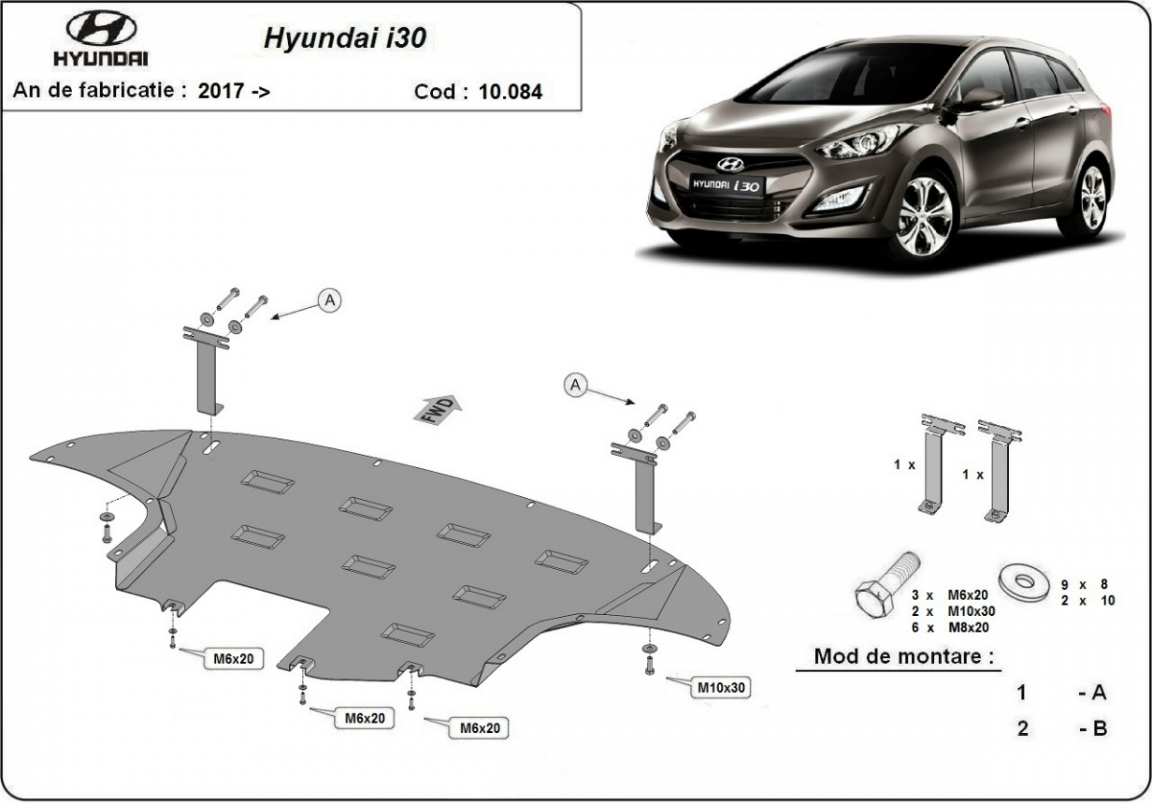 The sump guard is new and fits perfectly for all versions of Hyundai I30 manufactured between 2017 and 2026. Sump guard for the protection of the: engine, gearbox, radiator, front bumper Made out of 2 mm thick Steel plate. Screws, nuts, clips, all fastening accessories are included. All sump guards are powder coated to prevent corrosion. The exterior of the sump guard is provided with Steel reinforcements, which increases the resistance to impact. |