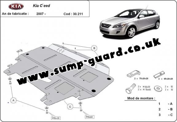 The sump guard is new and fits perfectly for all versions of Kia Ceed manufactured between 2007 and 2011. Sump guard for the protection of the: engine, gearbox It has an opening for the oil sump, so it's removal won't be necessary to change the oil. Made out of 2 mm thick Steel plate. Screws, nuts, clips, all fastening accessories are included. All sump guards are powder coated to prevent corrosion. The exterior of the sump guard is provided with Steel reinforcements, which increases the resistance to impact. |