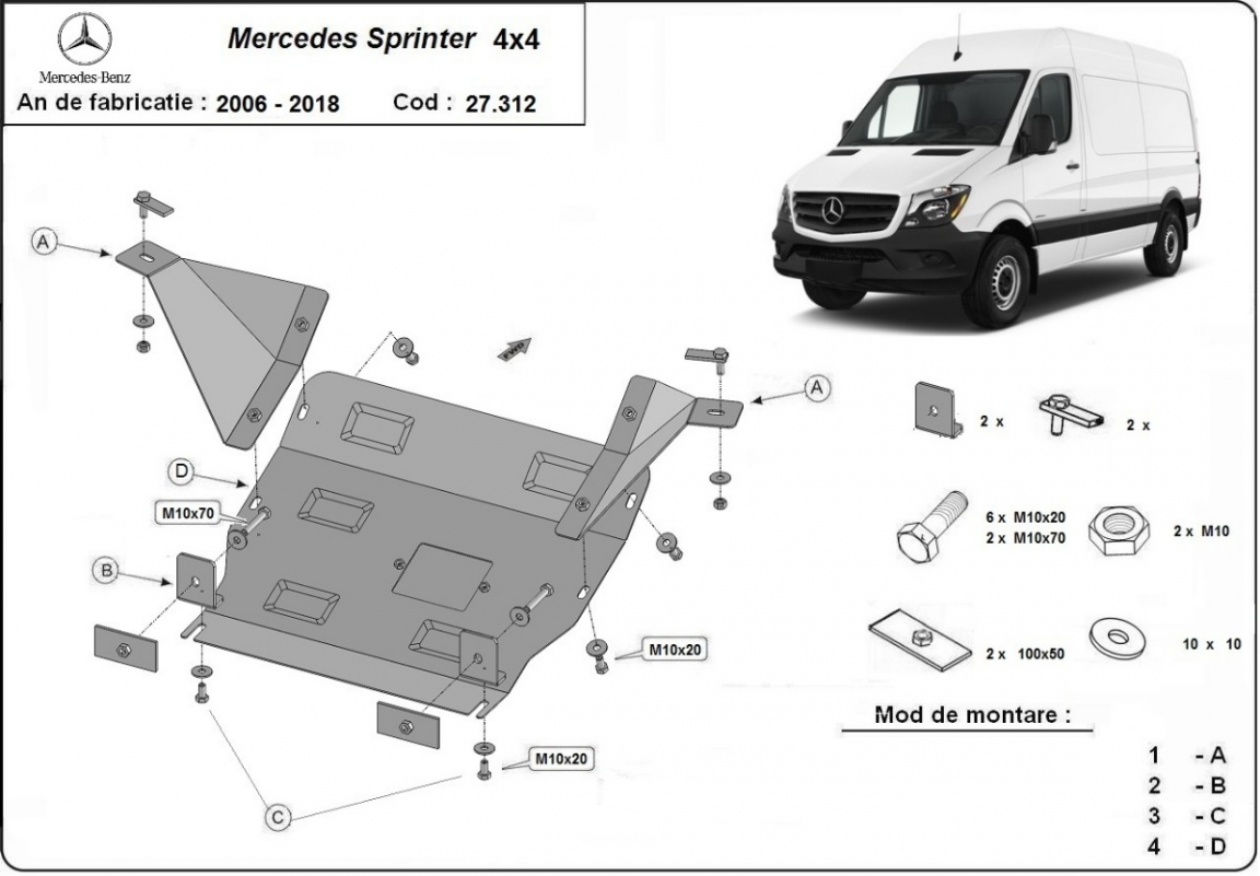 Steel sump guard for Mercedes Sprinter 906 4x4