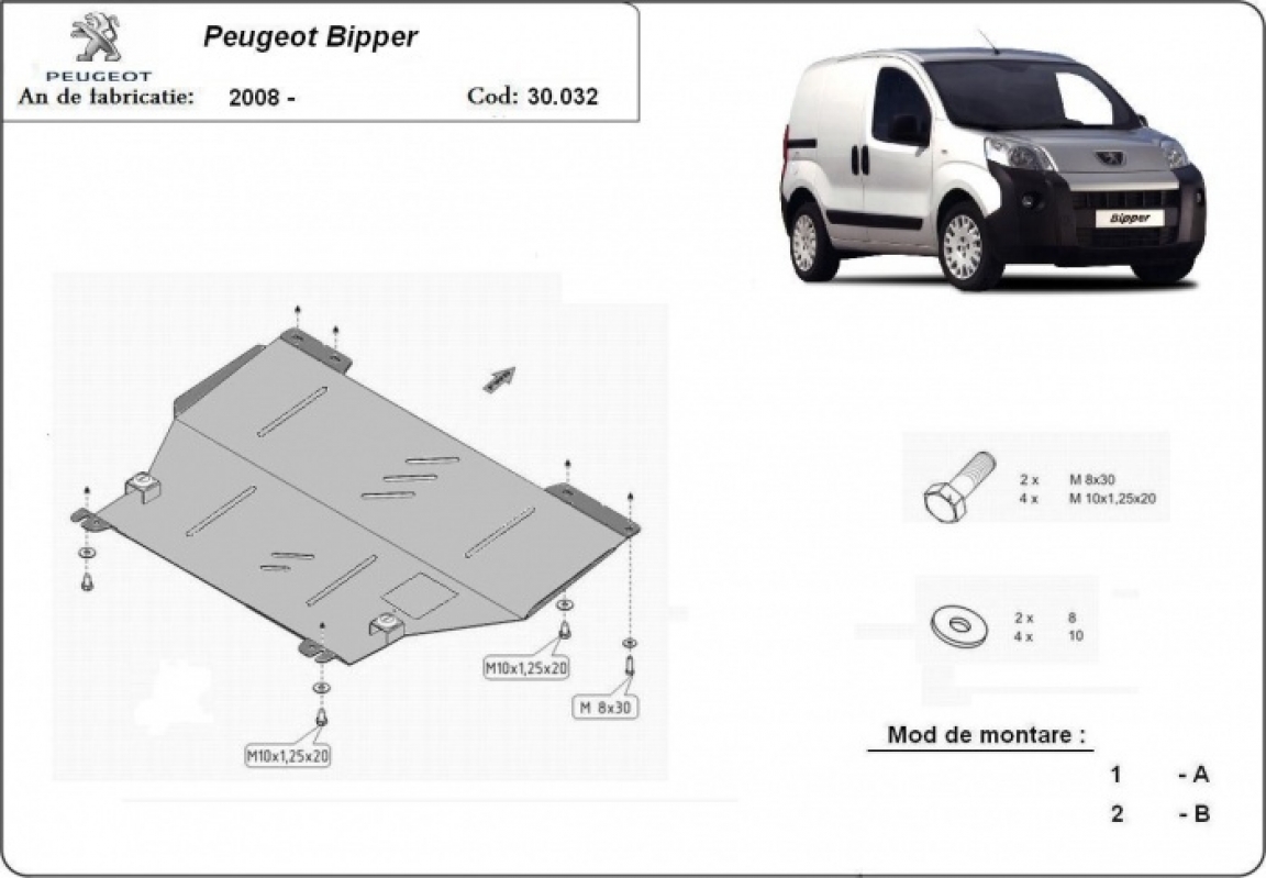 Steel sump guard for Peugeot Bipper (2007-2021)
