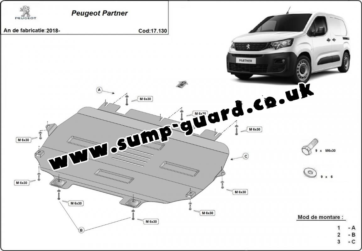 Steel sump guard for Peugeot Partner (2018-2025)