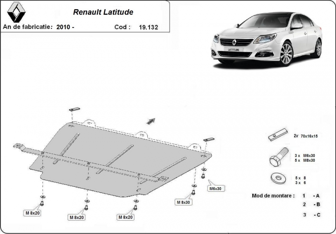 Steel sump guard for Renault Latitude (2010-2015)