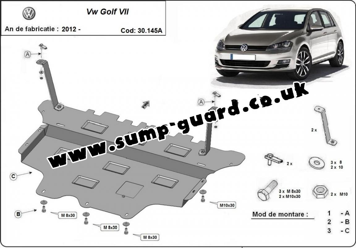 Steel sump guard for the protection of the engine and the gearbox for VW Golf 7 - automatic gearbox (2012-2019)