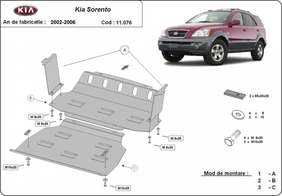 Steel sump guard for the protection of the engine and the radiator for Kia Sorento (2002-2006)