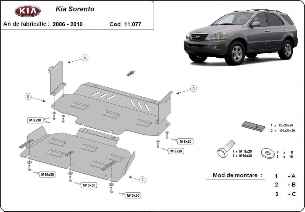 Steel sump guard for the protection of the engine and the radiator for Kia Sorento (2006-2009)