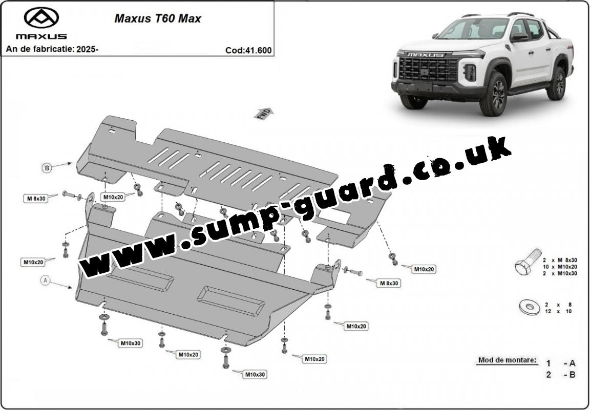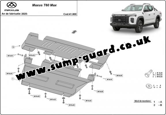 Steel sump guard for the protection of the engine and the radiator for Maxus T60 Max (2025-2025)