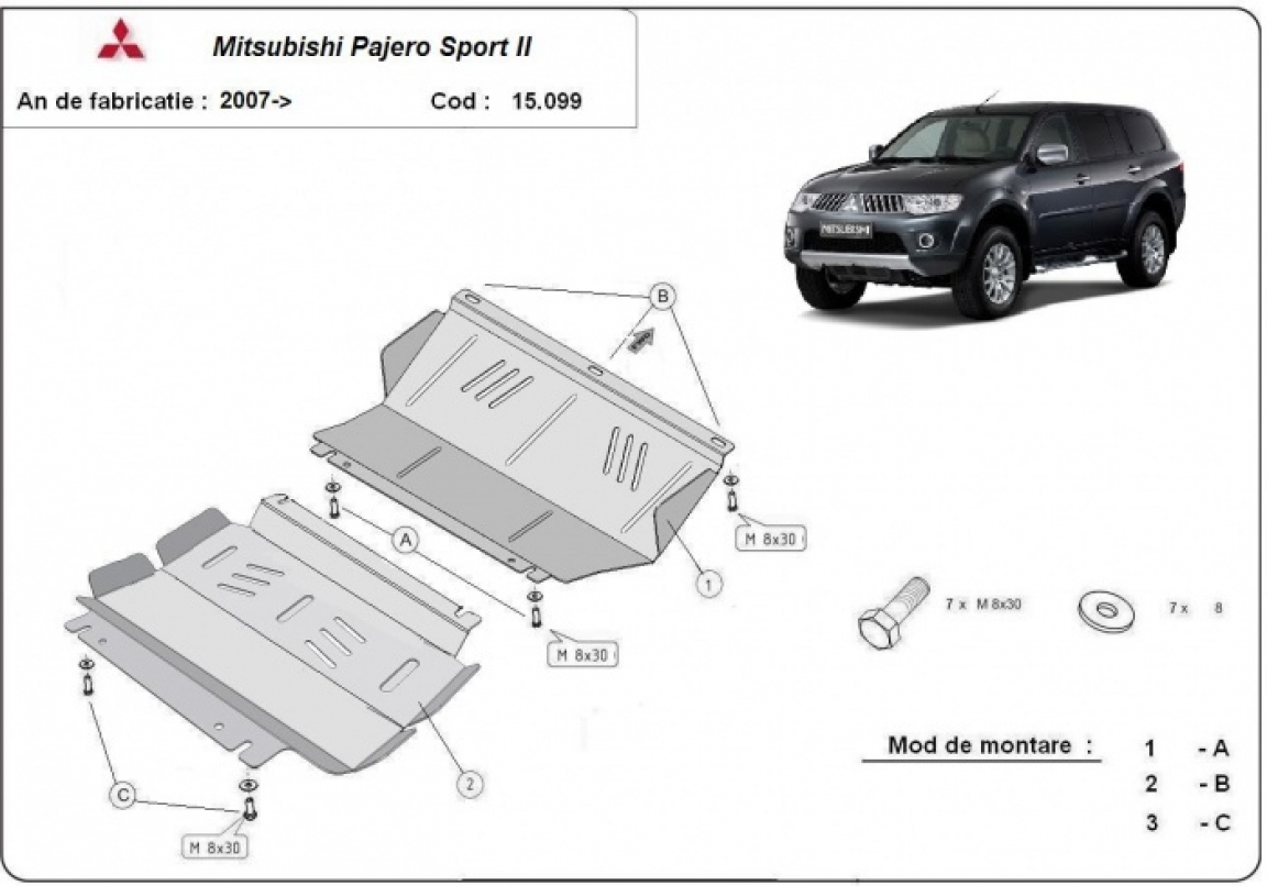 The sump guard is new and fits perfectly for all versions of Mitsubishi Shogun Sport 2 manufactured between 2008 and 2016. Sump guard for the protection of the: engine, radiator Made out of 3 mm thick Steel plate. Screws, nuts, clips, all fastening accessories are included. All sump guards are powder coated to prevent corrosion. The exterior of the sump guard is provided with Steel reinforcements, which increases the resistance to impact. |
