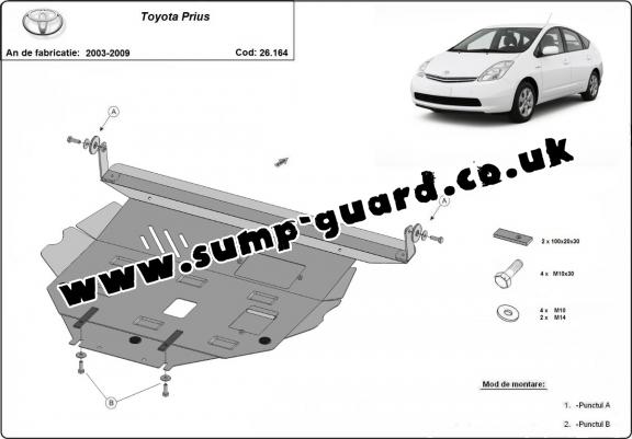 The sump guard is new and fits perfectly for all versions of Toyota Prius manufactured between 2003 and 2009. Sump guard for the protection of the: engine, gearbox, radiator Made out of 2 mm thick Steel plate. Screws, nuts, clips, all fastening accessories are included. All sump guards are powder coated to prevent corrosion. The exterior of the sump guard is provided with Steel reinforcements, which increases the resistance to impact. |