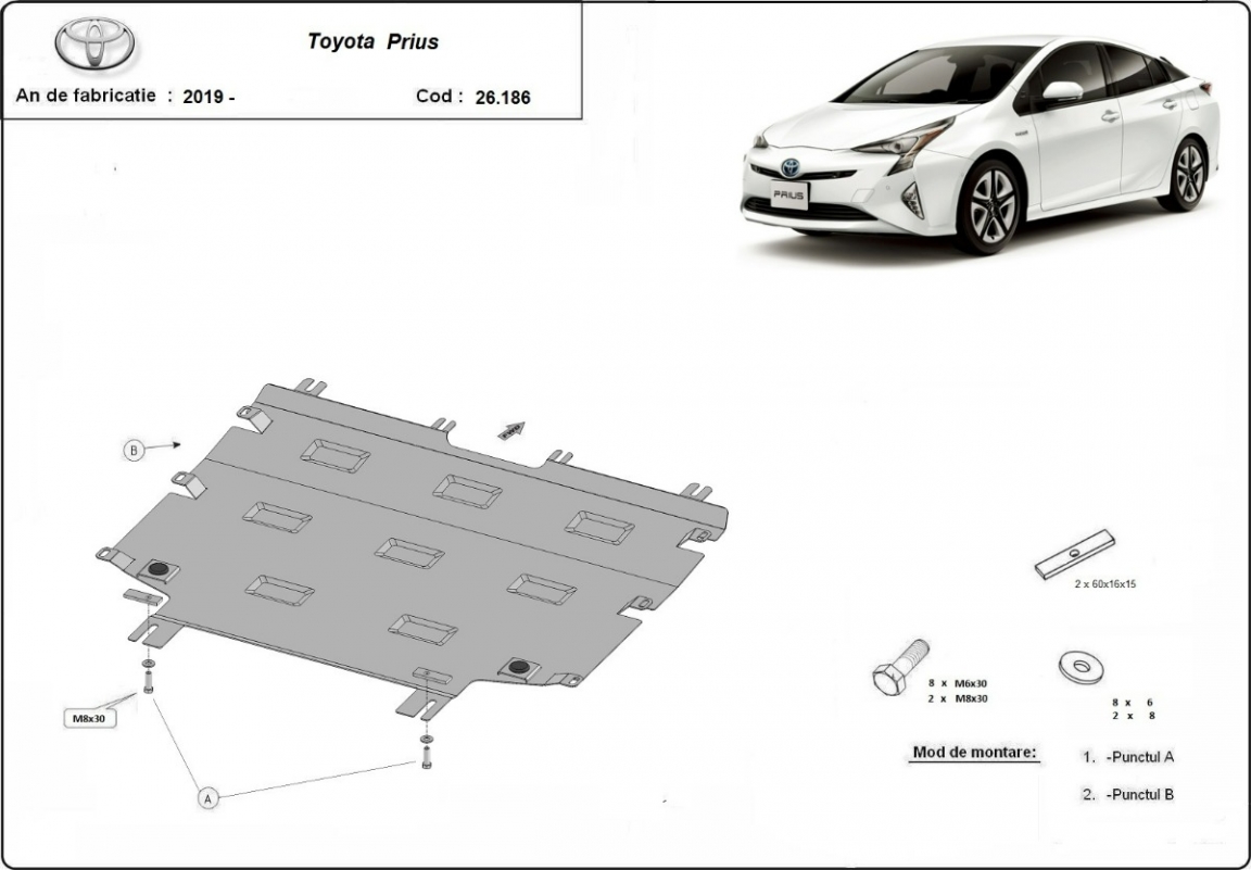 The sump guard is new and fits perfectly for all versions of Toyota Prius manufactured between 2016 and 2022. Sump guard for the protection of the: engine, gearbox Made out of 2 mm thick Steel plate. Screws, nuts, clips, all fastening accessories are included. All sump guards are powder coated to prevent corrosion. The exterior of the sump guard is provided with Steel reinforcements, which increases the resistance to impact. |