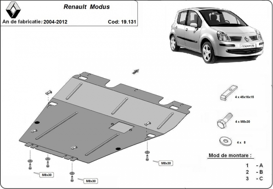 Steel sump guard for Renault Modus (2004-2012)